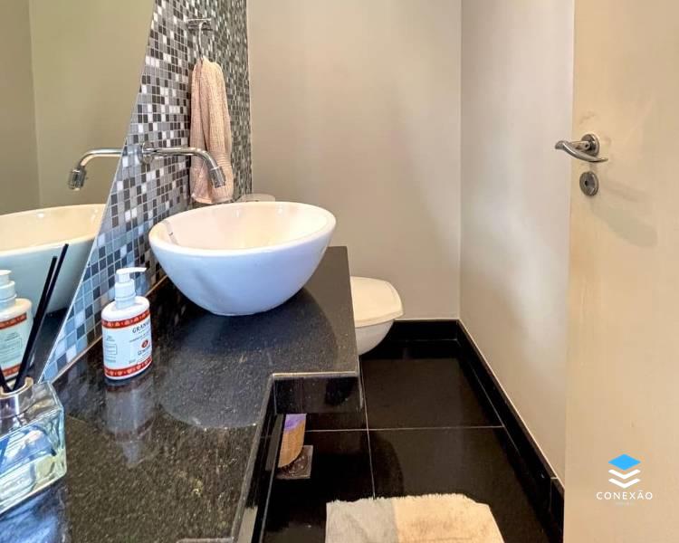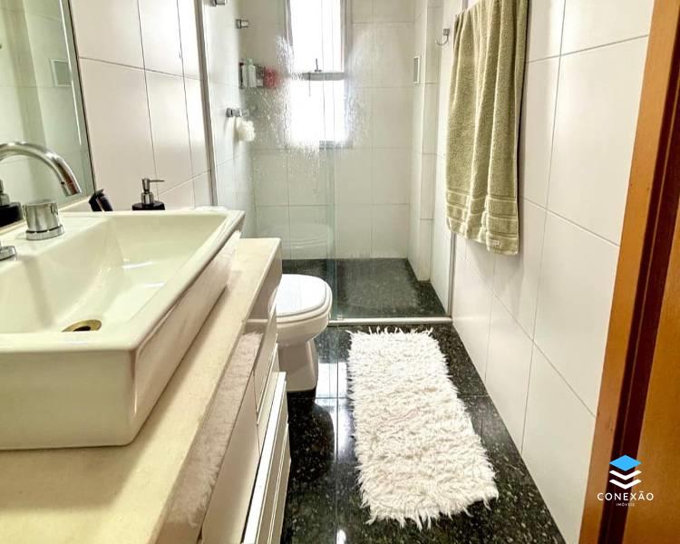 4 quartos amplos com piso em vinílico de madeira e armários, sendo duas suítes com bancada em granito, espelho e box em blindex