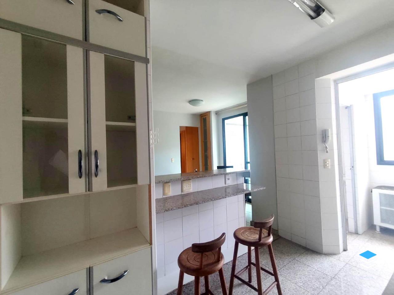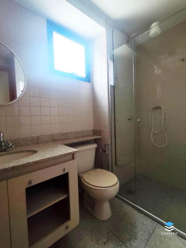3 banheiros (suíte, social e serviço), todos com bancada em granito, armários e box em vidro temperado