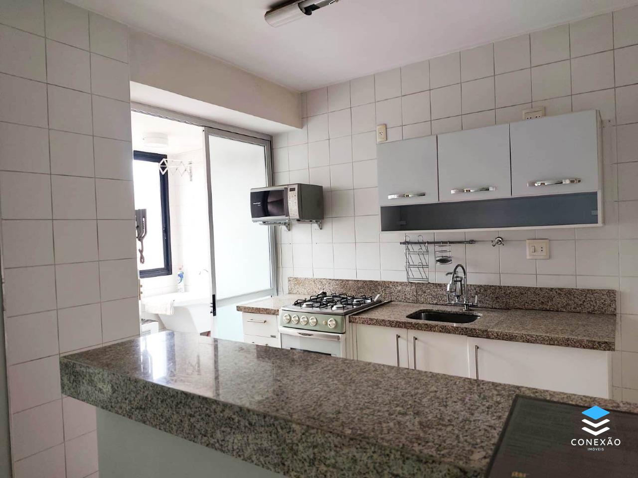 Cozinha americana com armários planejados e bancada em granito